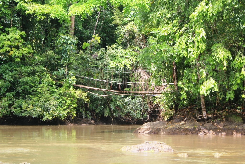 There’s an intricate web of hiking trails starting from the resort grounds, taking you all over Corcovado Park. We follow one for just a few minutes, as we were not expecting -and are not equipped- to hike in the jungle. Besides, the rain of the previous night rendered the terrain a mixture of slippery leaves and mud. We just make it to a suspended bridge before regretfully turning back…
