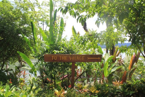 We take the path of least resistance for once, following a little trail marked “The Village” and ending up on the beach of Bahia Drake’s Village.