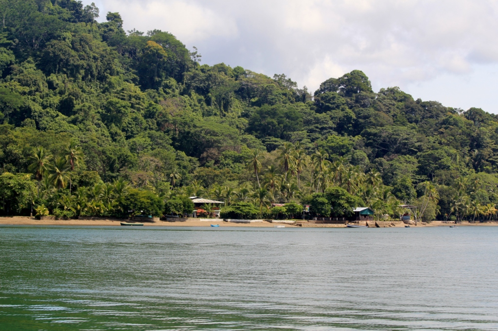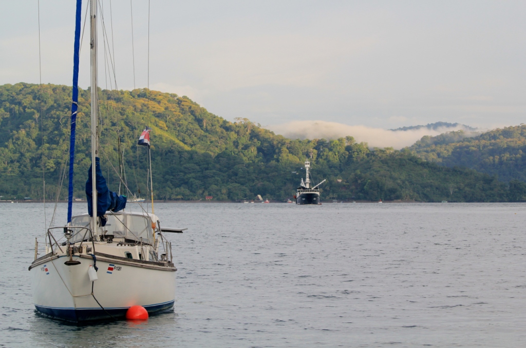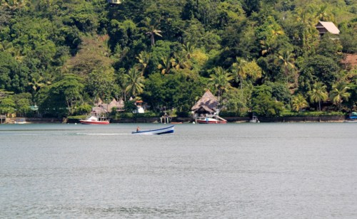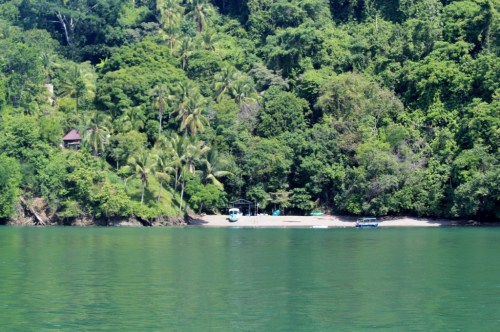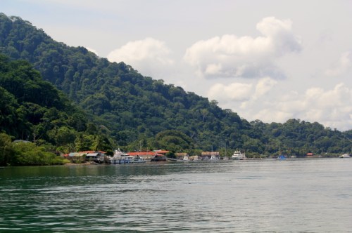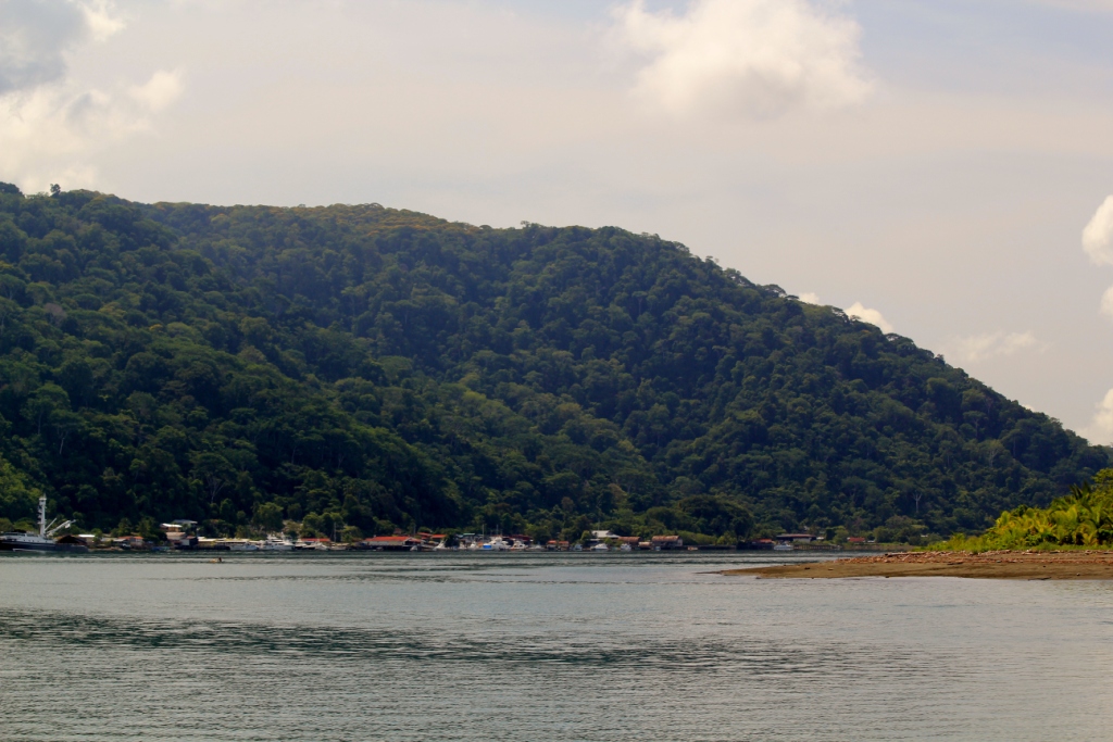 We’re very close to shore and the club house, just a short paddle away. Behind the club house, Golfito’s main road stretches out; behind the road… rainforest! That’s it.