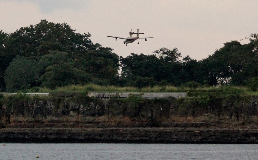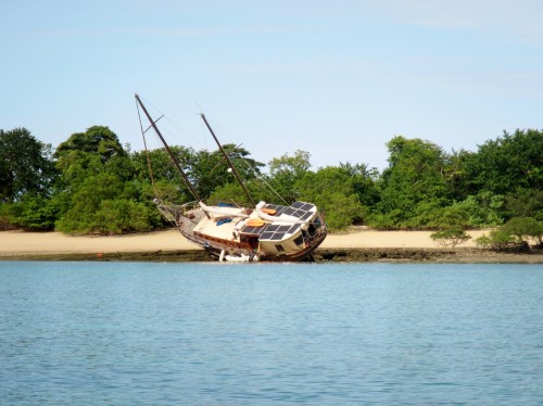 A panga comes by with orders from the local authorities to move to another spot, as we’re smack in the middle of the little airport runway and our mast is in the way of the small aircrafts landing and taking off.