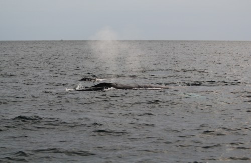The greyness of the day and intermittent rains do not inspire us to do much, so we just settle down and get used to life at anchor again, get to know our new surroundings and watch Mama and Baby Whale spin slow, lazy circles around our boat.
