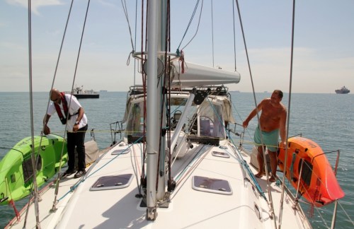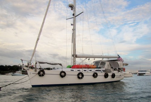 Camelot has been formally measured by the official in charge of this essential step. From the tip of the anchor to bottom of the davits, we total 51.5 feet. Dammit, we’re over 50 feet, which means we get to pay the next –higher- fee level. What can you do, it’s not like you can have Camelot temporarily suck in her length, right? Just smile and pay and say thank you.