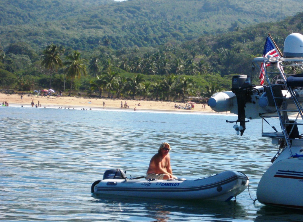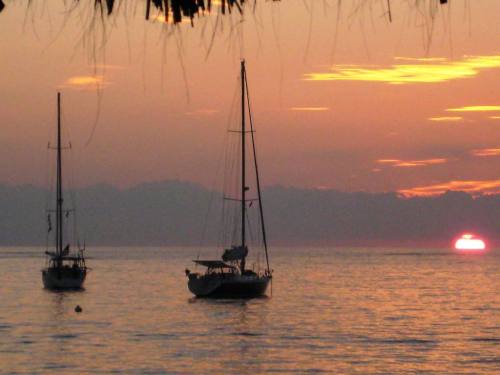 Problem solved, Tom hops in the dinghy to go visit and introduce himself to the neighboring boats. There are 8 boats in this anchorage, only two of them are known to us. Of course my friendly husband needs to fix that! Upon his return I hear about our dinner plans: we’ll all converge to one of the restaurants on the beach for cocktails and food, to enjoy the spectacular sunset and celebrate new friendships.