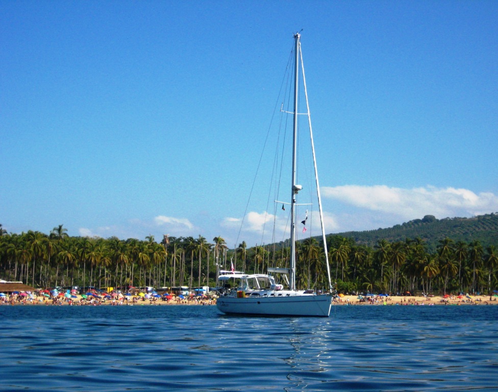 Now on to other new, exciting destinations. Today we sail to Chacala, a small bay and fishing village. The plan is to stop here to interrupt the long leg taking us eventually to la Cruz de Huanacaxtle, Banderas Bay, where we’ll reunite with friends to celebrate the New Year. The 167 miles trip requires an “overnighter”. We’re giddy with anticipation, the seas are very calm and sparkling, there’s precious little wind. We’ll be at sea for more or less 23 hours. We quickly set into our familiar routines and it’s a pleasant, uneventful trip. We even get to sail for over 50 miles when the wind gently rises for a few hours. As usual, moments of worry and concern interrupt the peace. The route we’re following is notoriously frequented by whales and there’s the added preoccupation of the ever-present, pesky fishing nets invisible to the naked eye even in daylight.