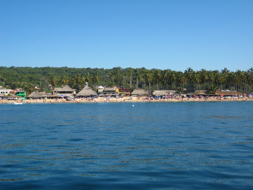We finally pull into Chacala Bay, very picturesque village with an awesome, long, palm-fringed beach but a little crowded and noisy. After all it’s the Christmas vacation period and this is one of the touristic spots favored by the locals. I can certainly see why…
